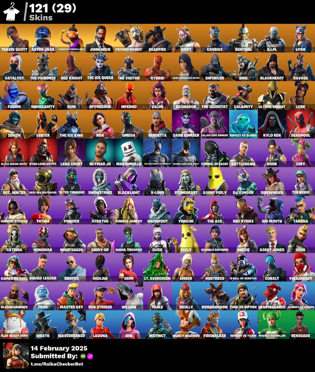 121 SKISN | TRAVIS SCOTT | PSYCHO BANDIT | BLACK WIDOW | ASTRO JACK | JOHN WICK | ORANGE JUSTICE | LARA CROFT