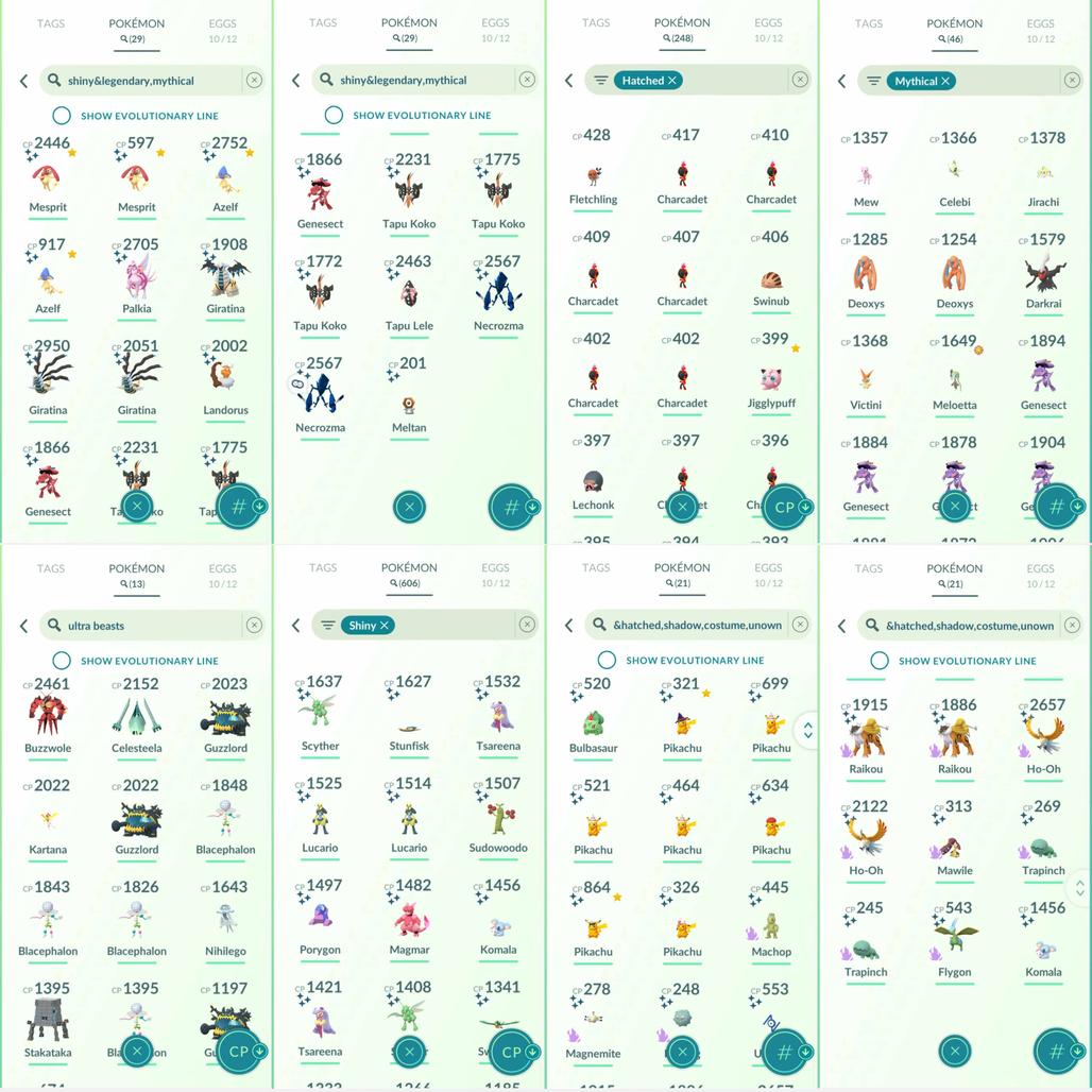 Shiny: shadow raikou, shadow ho-oh, regice, palkia origin (traded), giratina origin-altered, landorus, genesect, tapu koko-lele, necrozma, meltan, unown N, pikachu cake hat, pikachu Hilda's Hat, Pikachu Rei's Cap.