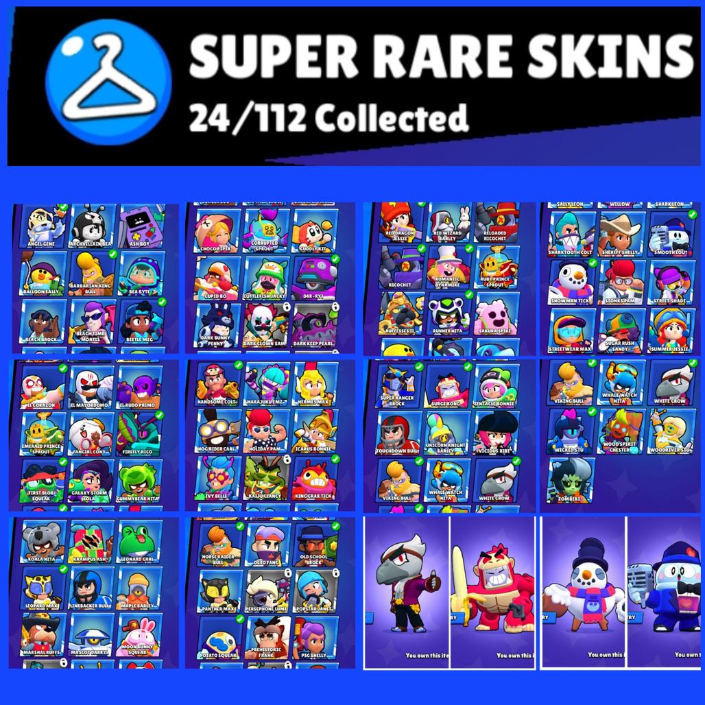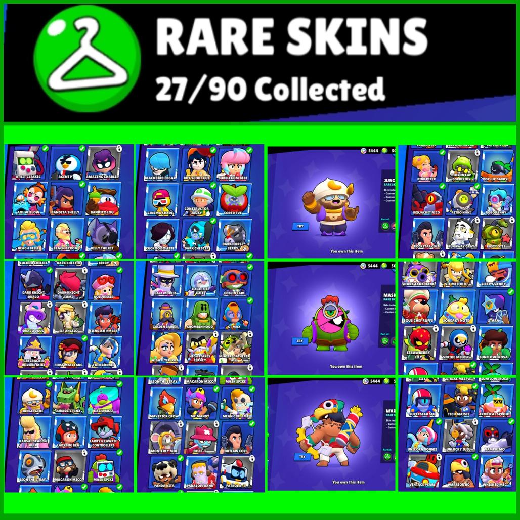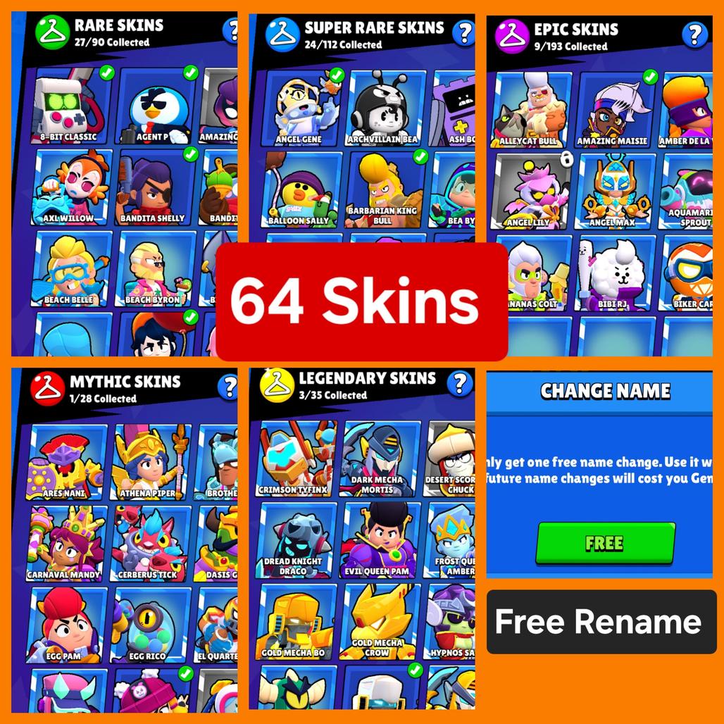 🎭 Total Skins: 64 (🟢 27 Rare, 🔵 24 Super Rare, 🟣 9 Epic, 🔴 1 Mythic, 👑 3 Legendary )