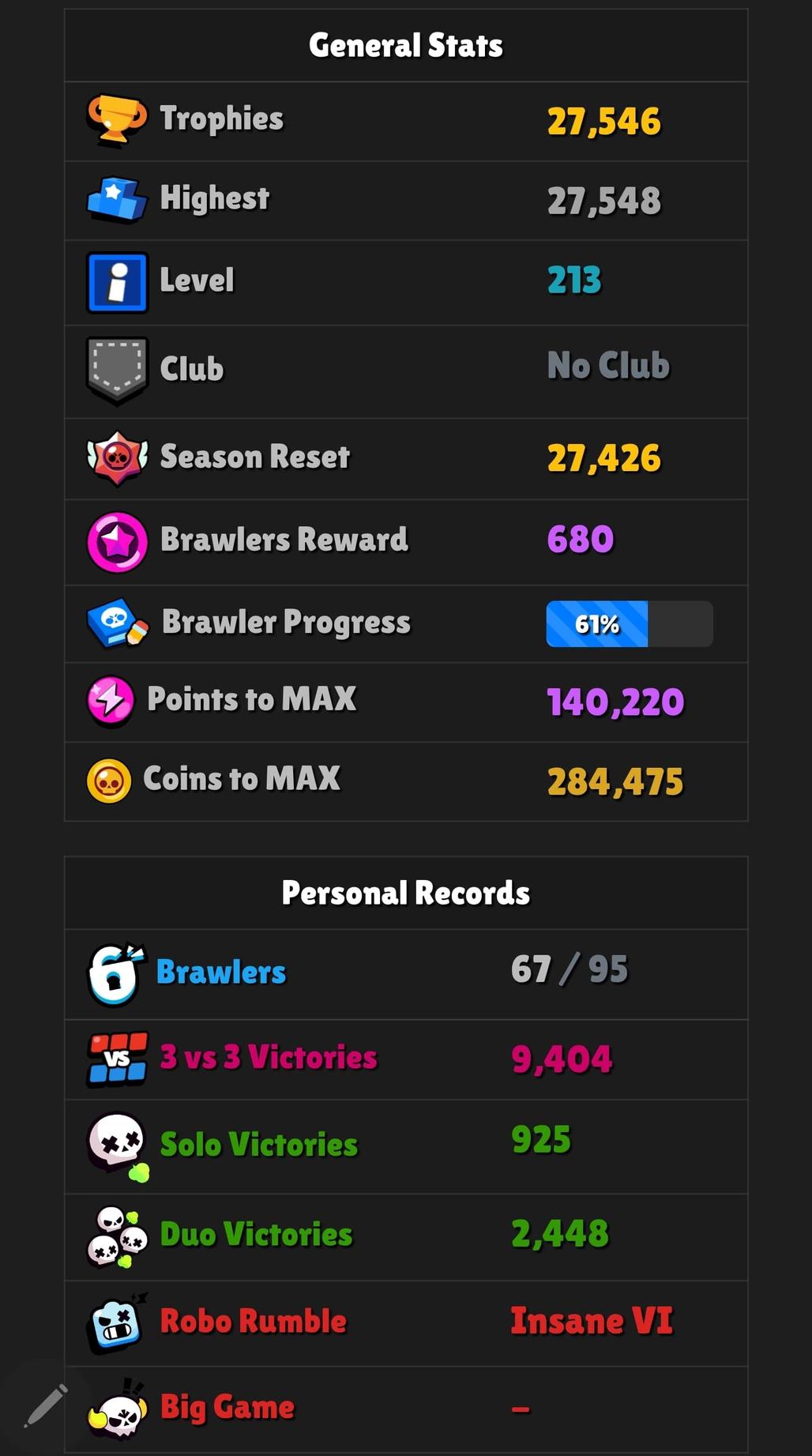 27546 Trophies| 67Brawlers | 64Skins | 10Maxed 10Hyper| LV213 Created 2019 | FREE RENAME | Instant Delivery