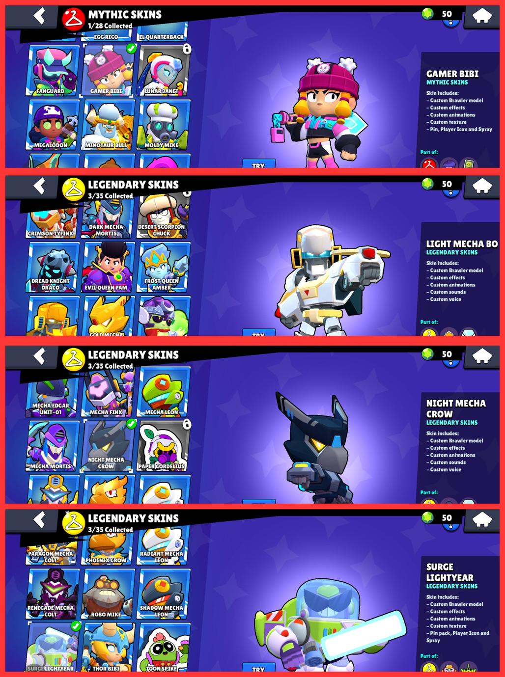 🎭 You can find all unlocked skins displayed in the screenshots.