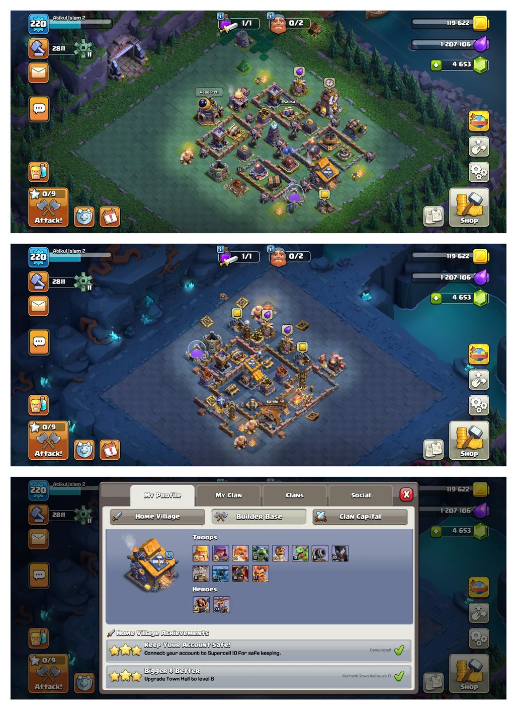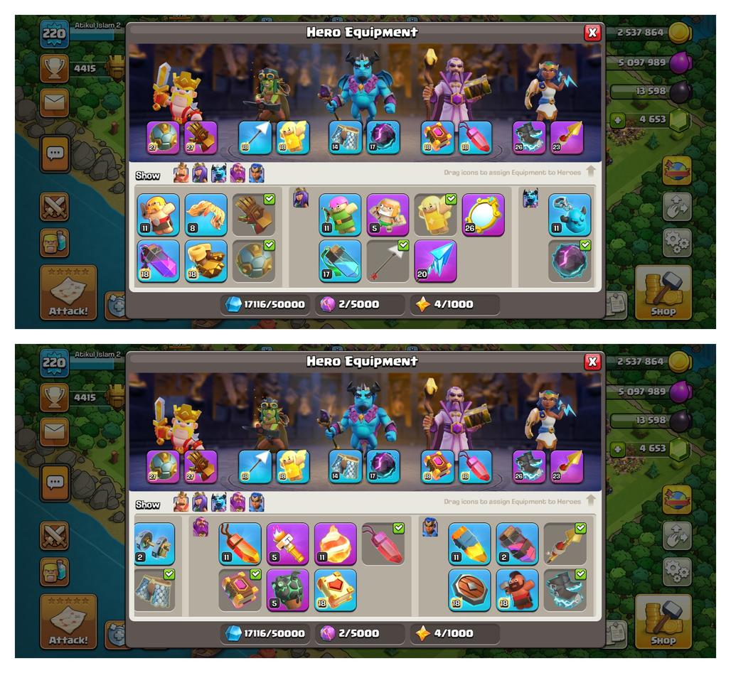 4 Hero Max ! TH-17 ! 2 Epic Max ! Xp-220 ! Hero 100-100-73-75-50 !! Nc Yes ! 11X Epic ! Huge Medel And Items !