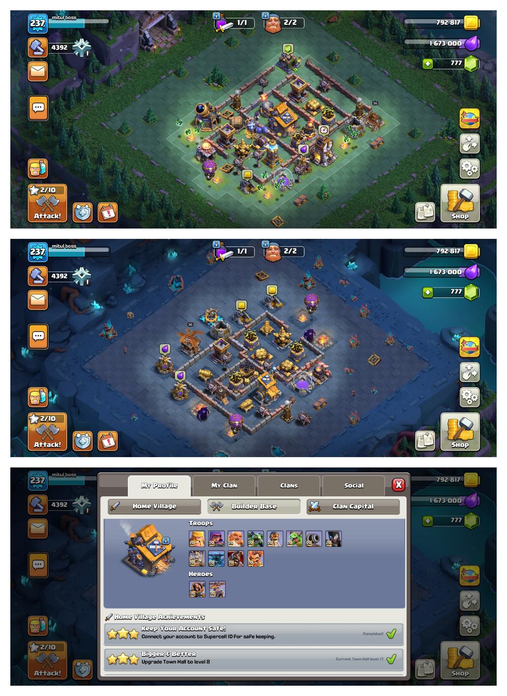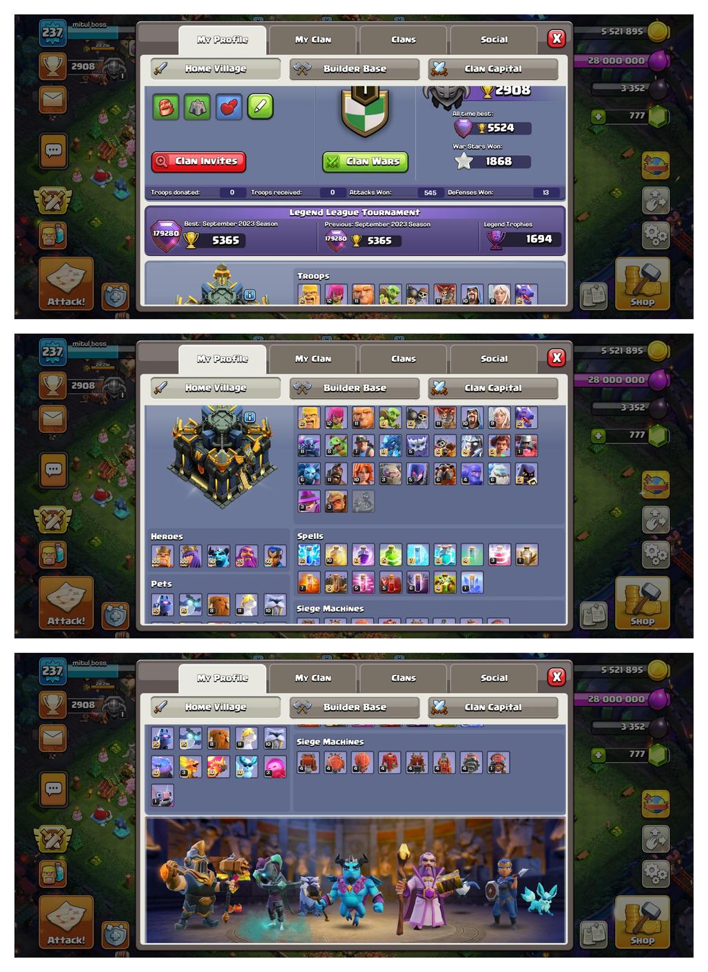 5 Hero Max !! TH-17 Near Max !! Xp-237 !! Hero 100-100-90-75-50 !! All Epic Equipment !! 2 Epic Max-Defense & Wall Max