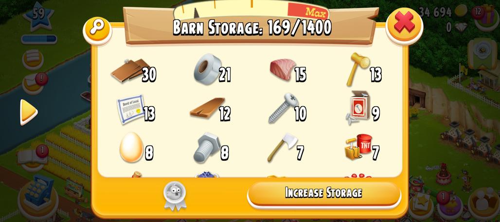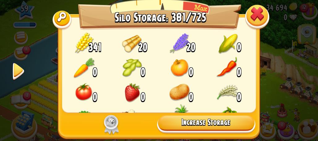59 Level | Barn Storage 1400 | Silo Storage 725 | 40k Coin | | Android & ios