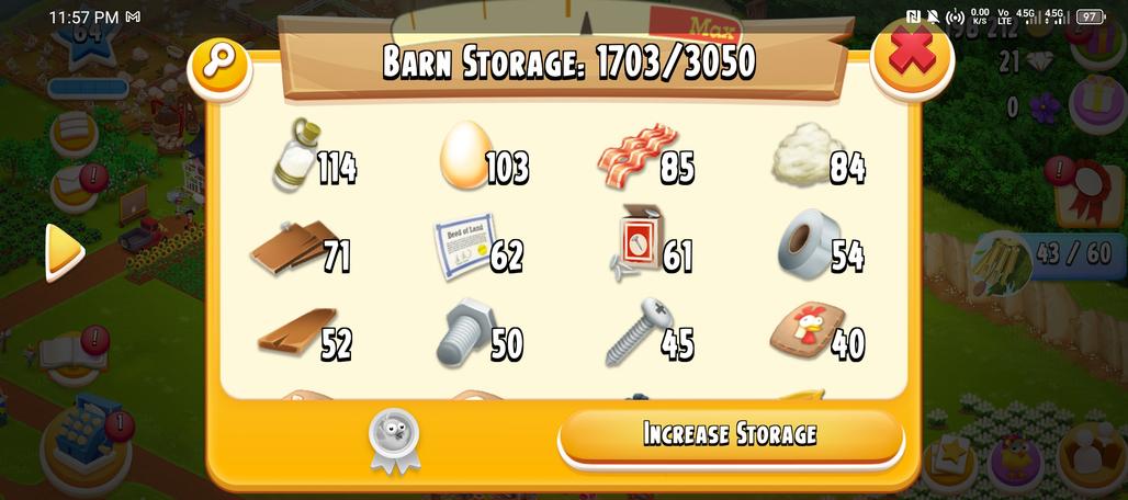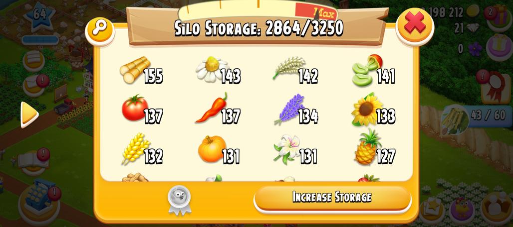 64 Level | Barn Storage 3050 | Silo Storage 3250 | 2M Coin | 21 gems | Android & ios