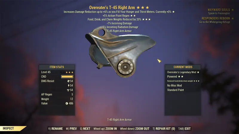 [ PC ] Power Armor | T-45 Overeater's [AP Refresh] [Food | Drink | Chem | Weight Reduced] (Full Set) (instant delivery)