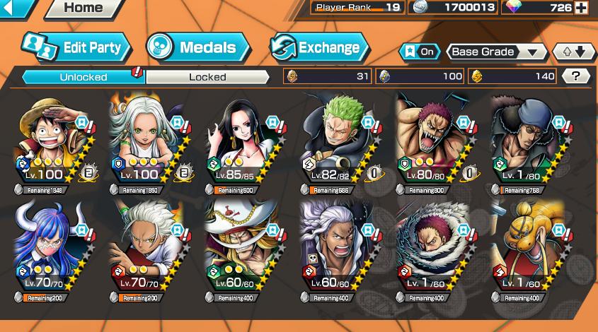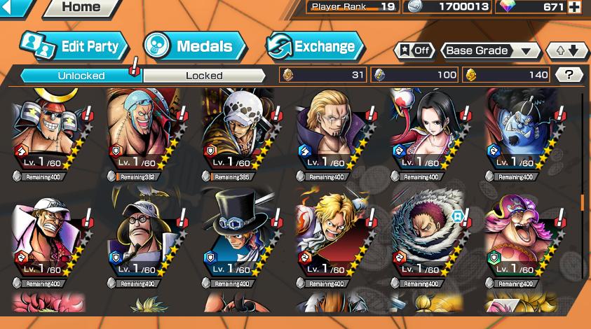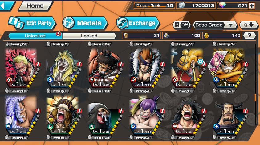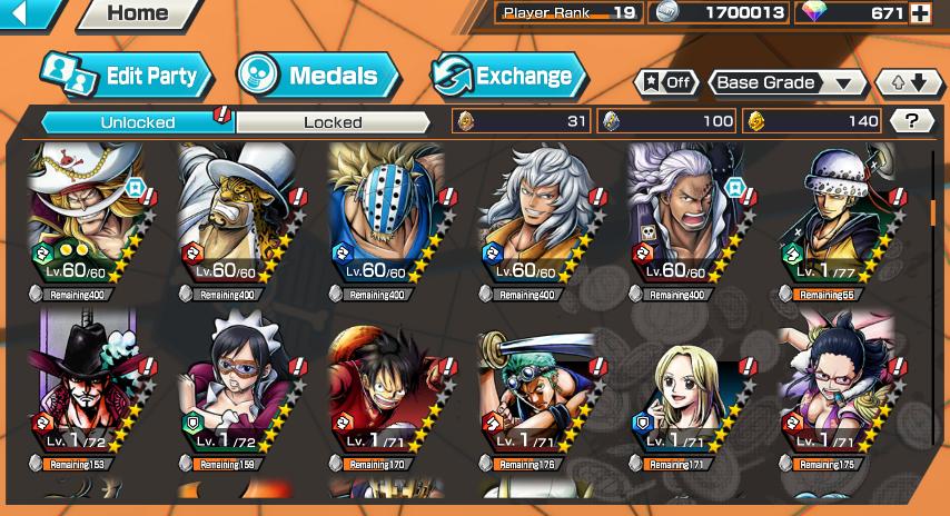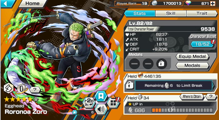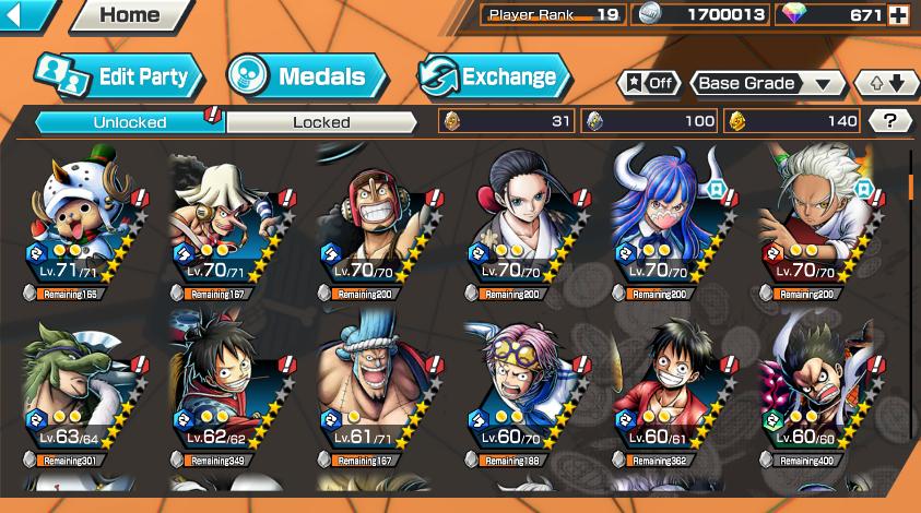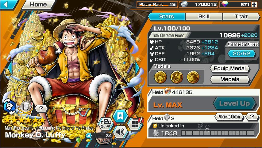 Android Only-2 Ex Max(S-Snake+Luffy King)+671 Diamon+Egghead Zoro+S-Hawk+Bluneo+King+Good Medal and Items-BR179