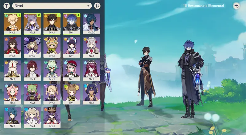 Prominent characters: Flins, Zhongli, Keqing, (Barbara c4), (Sucrose, Xingqiu c2), (Rosaria, Shinobu, Candace c1)
