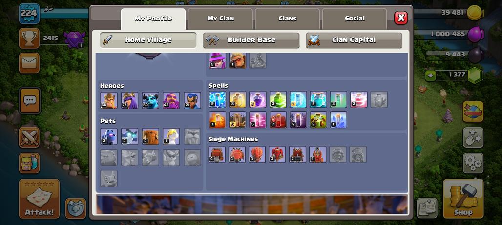 CHEAP TH14 - LVL224- HERO 68-77-50-45-21- RENAME 1000- PETS 3 4 4 2- RARE OBSTACLES - INSTANT DELIVERY- IOS-ANDROID