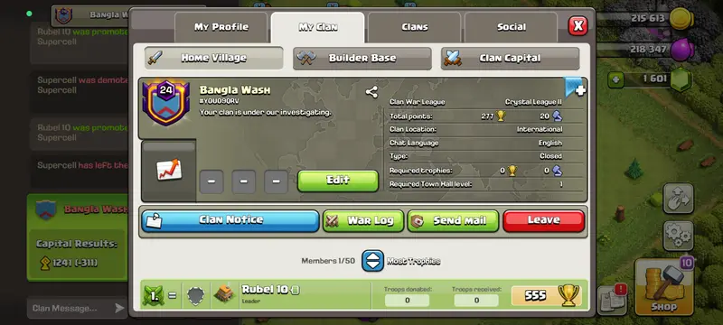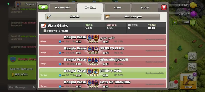 CLAN LEVEL 24 |! NAME BANGLA RUSH || CRYSTAL LEAGUE 2 || CAPITAL HALL 8 || WIN 544 LOSE 486 || POSITIVE WAR LOG