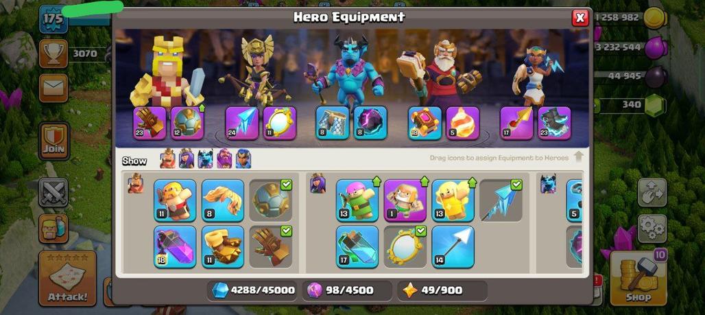 E508 | 8 EPIC EQUIPMENTS |RARE| | XP 175 TH15 SEMI MAX | BK 73 AQ 84 GW 57 RC 34 MP 54 | HIGH LEVEL TROOPS DEFENSE |