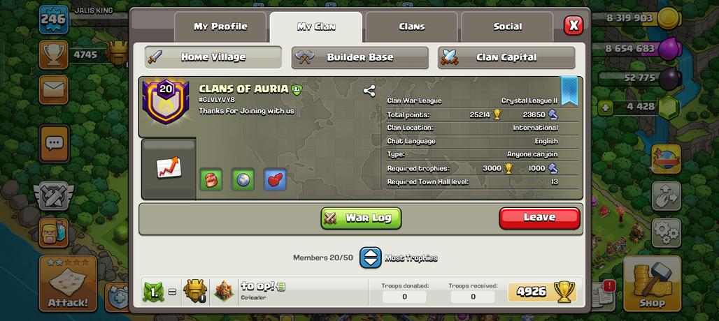 🔥English Name - CLANS OF AURIA 🔥Level 20 Clan | Positive War Log | Crystal League II | Clan Capital 8 | Fast Delivery