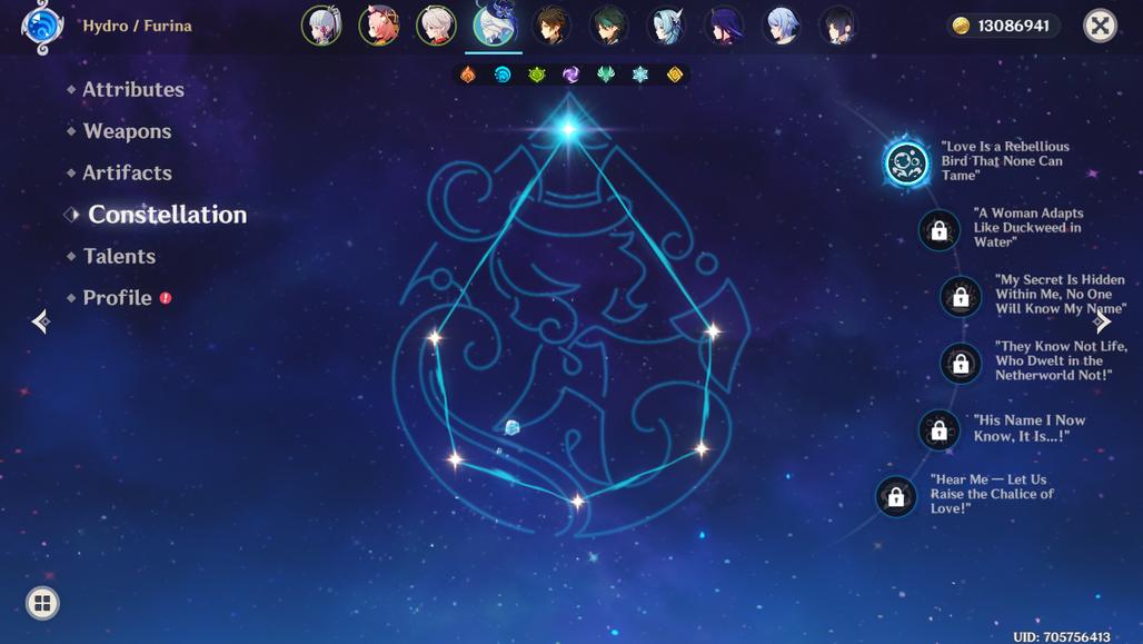 -C6 -Diona, Sara, Xingqiu, Yanfei, Xiangling, Noelle, Beidou, Thoma