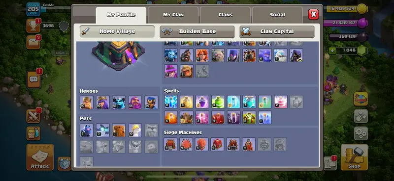 FULL MAX WALLS 🔥 TOWNHALL 14 💎 80-80-57-55-30 HEROES [] RENAME 1000 [] iOS ANDROID PLAYABLE