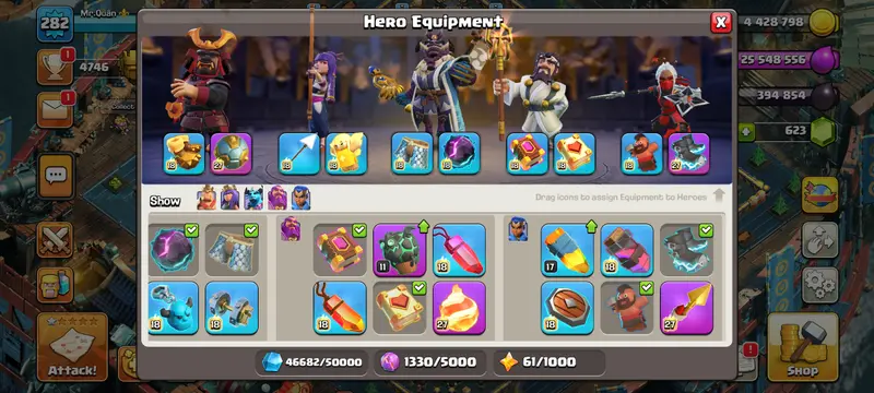 TH 17-[A-TO-Z]FULL MAX | 8X-EPIC-EQUIPMENT-MAX | 5X-HEROES-MAX | RARE-SAMURAI-SET-5.9K-W.STAR-XP-282-16K-LEGEND TROPHY