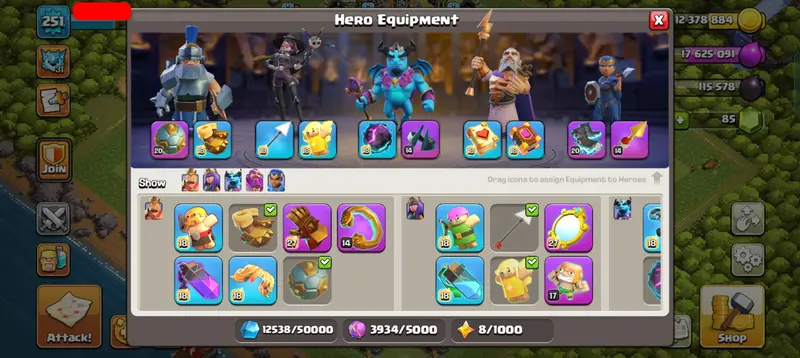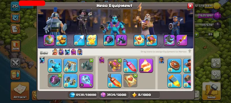 LEGEND RANK 💎 22 EQUIPMENTS MAX 💎 TOWNHALL 17 MAX HERO MAX PET - MAX CRAFTED DEFENSE - 2445 WWS -338 MEDAL- BH 10