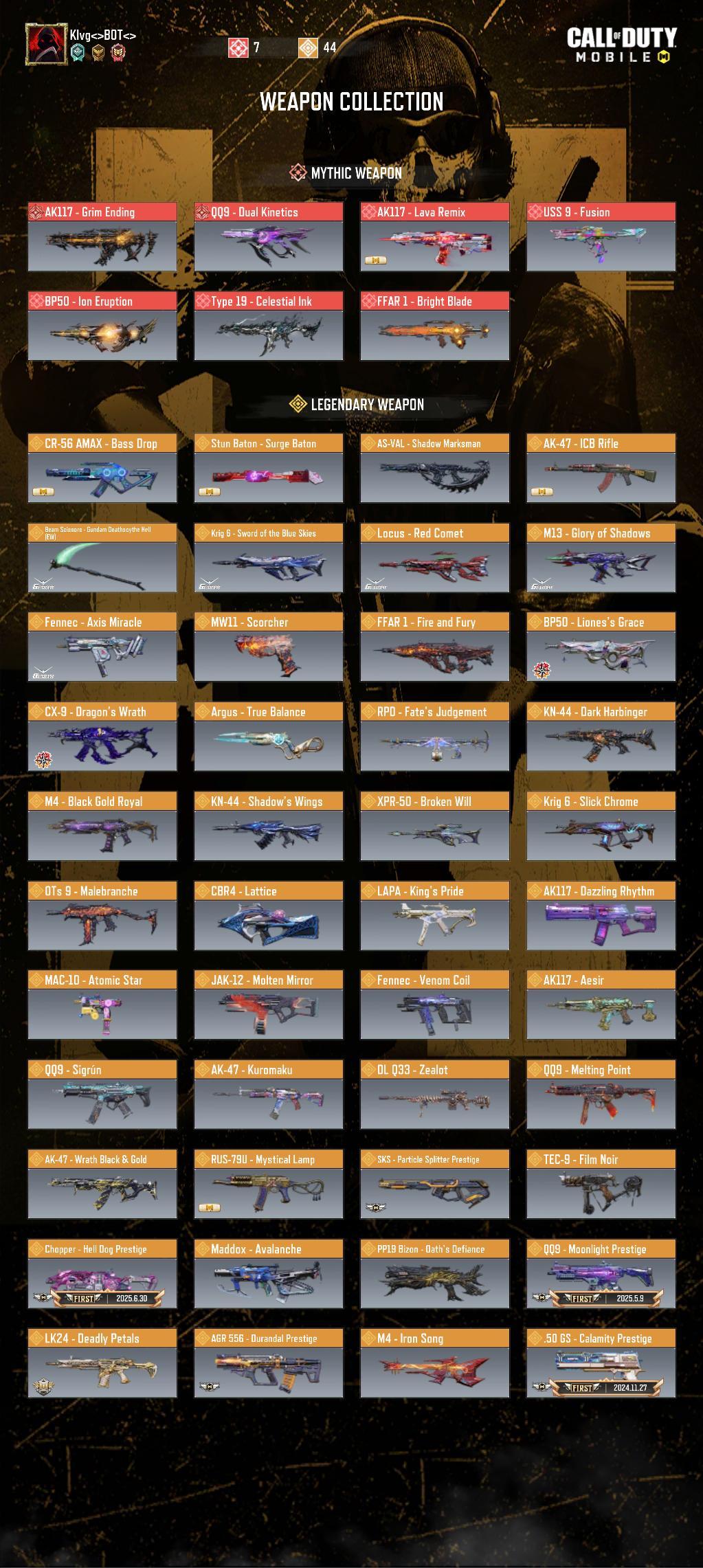 [Level 400] 10 CP Spins | Mythic Dark Shepherd x Mythic USS9 | 7 Mythic x 44 Legendary Weapons | OG | Activision Only