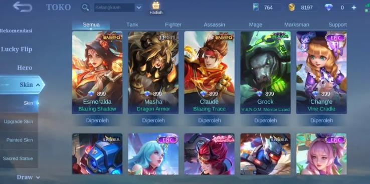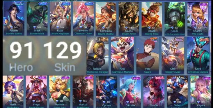 91 Hero, 129 Skin Account with Level 60 Basic Common Emblem and Multiple Epic/Special Skins including Esmeralda Blazing Shadow, Masha Dragon Armor, Claude Blazing Trace, Grock . Monitor Lizard, Chang'e Vine Cradle, Saber Codename - Storm, Silvanna Classroom Charm, Estes Arcane Magistrate, Zhask Extraterrestrial, Faramis Summer Sparks, Natalia Warrior's Paragon, Akai Marvelous Maestro, Vale Gajara, Clint Dragon's Maw, Gord Christmas Carnival, Nana Mecha Baby, Freya Raven Shogun, Rafaela Flower Fairy, Moskov Blood Spear, Cyclops . Exploder, Carmilla Crimson Rhapsody (G)
