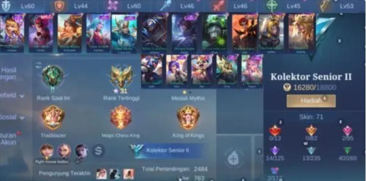 Akun Mlbb Emblem Max 2, Col Badang, Nata, Skin Setara Epic 14 (G)