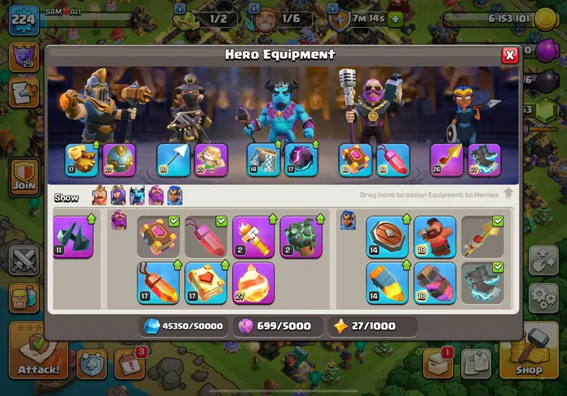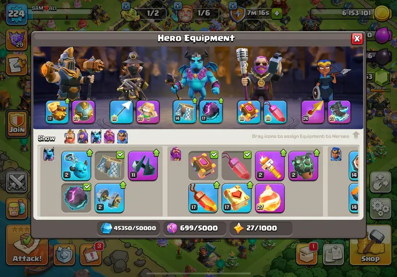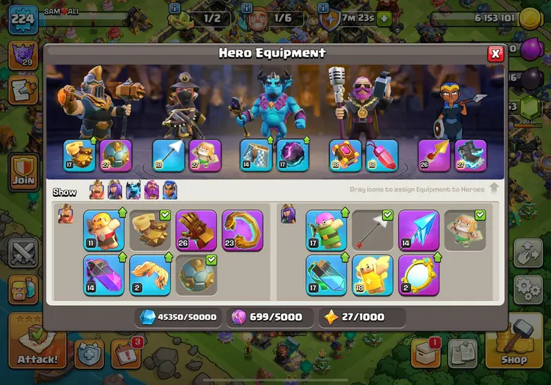 PvP Legend Ranked Account - 32 Equipment Pieces - Town Hall 18 - Heroes at 100-100-90-75-50 - Rename Tag (1K) - Skins Included - Builder Hall 10 - 1,063 Gems - 2,592 WWS - Instant Delivery Available