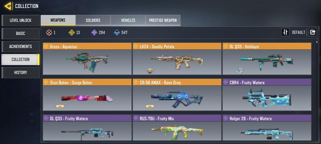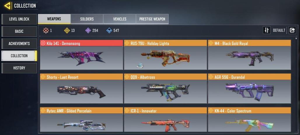 Save Activision - Gun Legend: 13 - Mythic gun: 1 -character Legend: 1 -Epic Gun: 294 - Epic character: 120