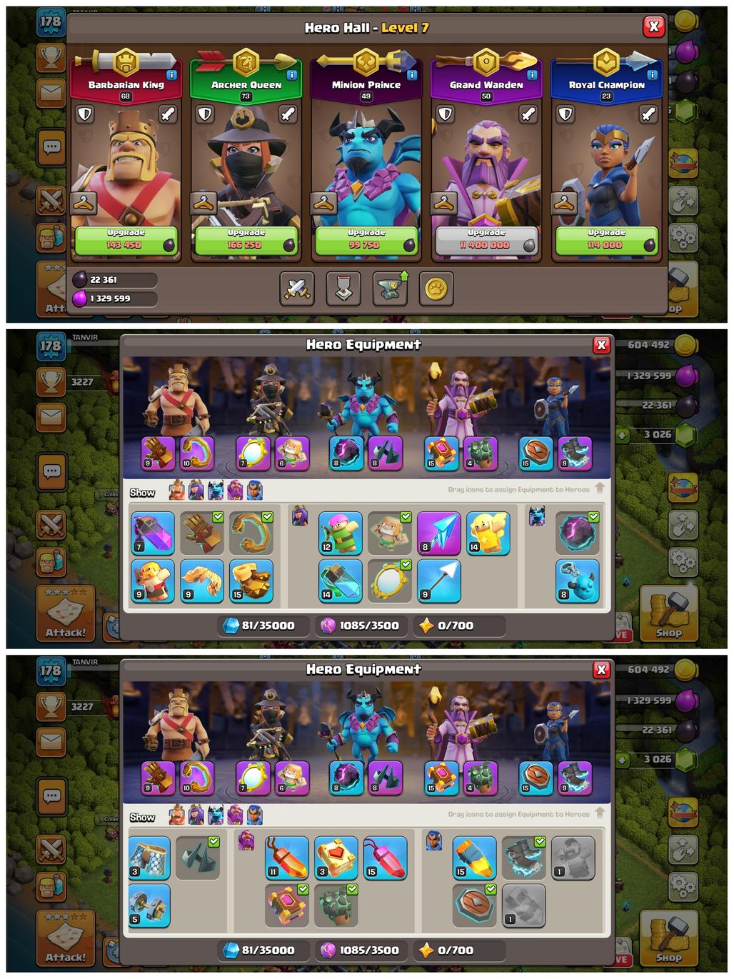 !TH13 Close to Max | Heroes: 68/73/50/23 | Minion 49 | 7 Epic (Good Level) | Near 6th Builder | NC: 500 | 3K+ Gems
