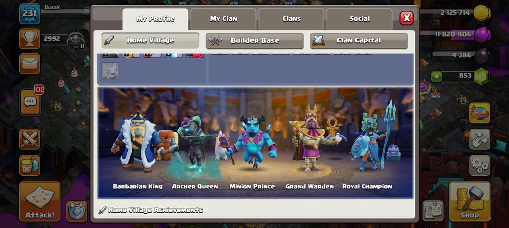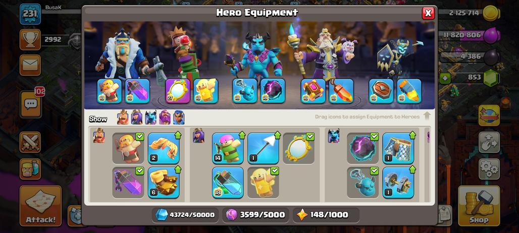 TH16- LVL 231- HERO 95-95-72-70-40 RENAME 1000 -16 HERO SKINS- IOS ANDROID - RARE OBSTACLES