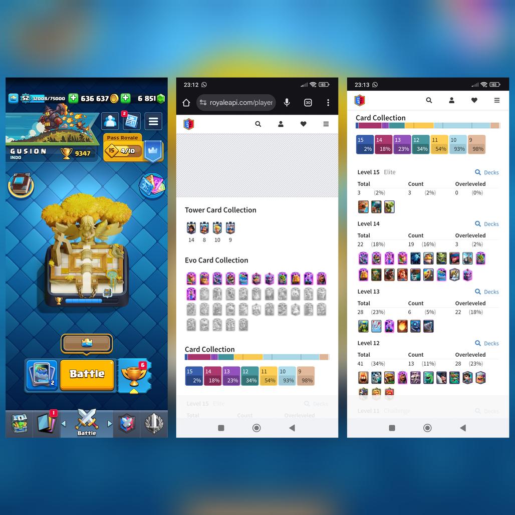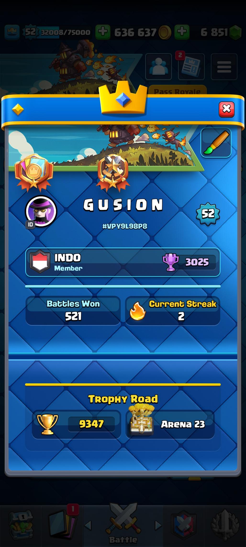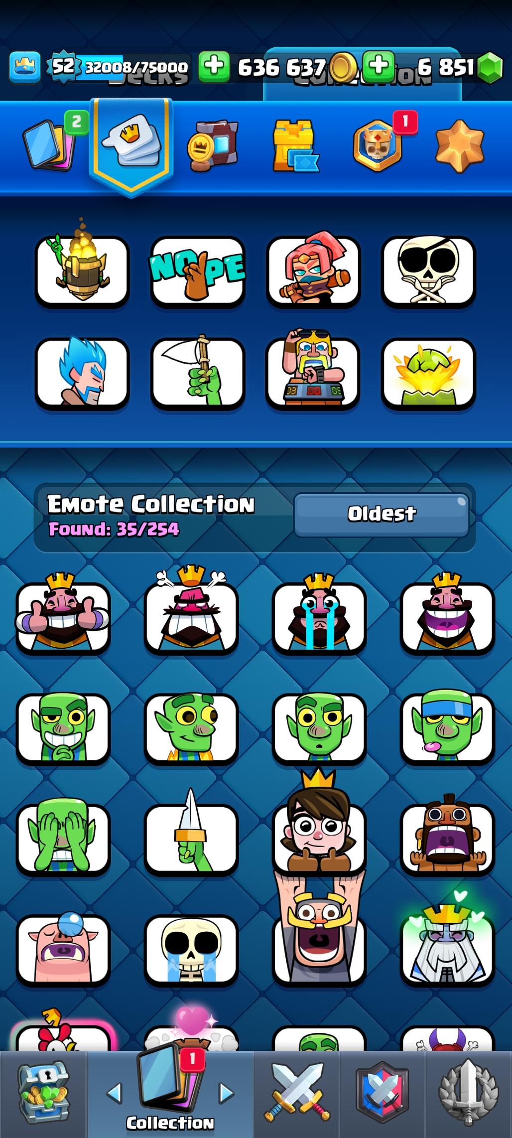 🔥Trophy 9347 | Evo 12🔥 Elite: 3 | Max Cards: 22 | Coin: 6.3 Million | Rarest Emotes: 35 | Gems: 6800 | Exp: 52 | Arena