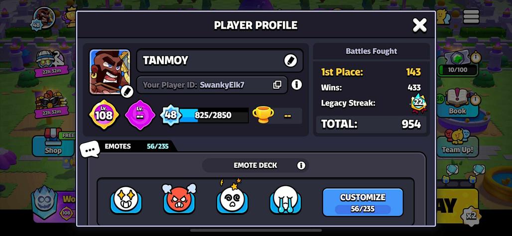 World Journey-108 || XP LVL.48 || SQUAD-28 || EMOTES-56 || 35K+ COINS || 450 HERO POINTS || ANDROID & IOS