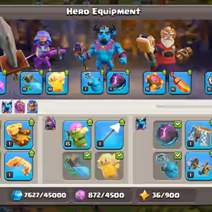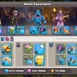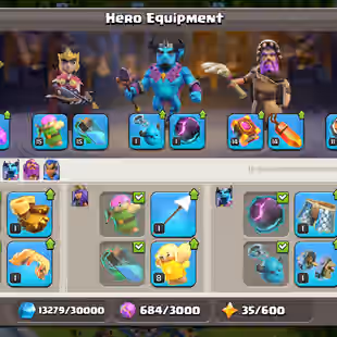 TH13 MAX- HERO 75-75-50-50-25 - FREE RENAME- 15500 GEMS- MAGIC ITEMS - INSTANT DELIVERY - IOS- ANDROID