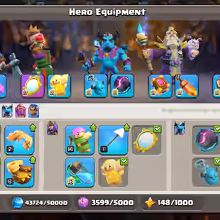 CHEAP TH14 - LVL208- HERO 78-80-55-51-30- PETS 5-3-3-3- HERO SKINS- RENAME 1000- INSTANT DELIVERY -IOS- ANDROID