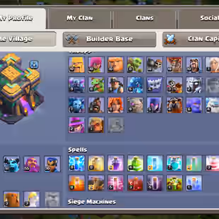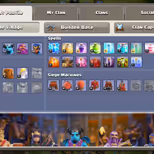 TH15 MAX- LVL266- HERO 85-90-65-35- FREE RENAME- MAX BUILDINGS AND LAB- RARE OBSTACLES - INSTANT DELIVERY -IOS- ANDROID