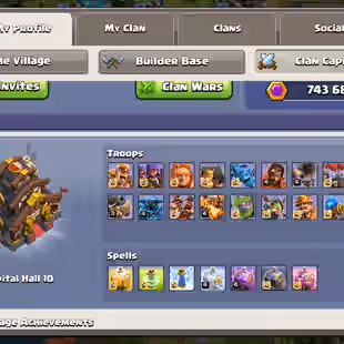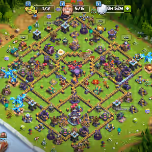 TH13 MAX - LVL206 - HERO 75-75-50-50-25- MAX WALL-MAX LAB - MAX BASE - RARE OBSTACLES - INSTANT DELIVERY - IOS- ANDROID