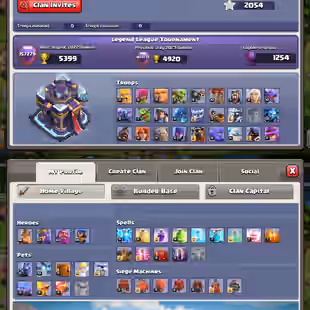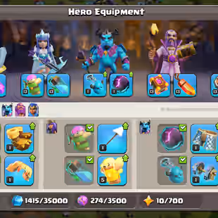TH15MAX- LVL252- HERO 85-90-65-35 - PETS 10-10-10-10-10-10-2-7- RENAME1500 - INSTANT DELIVERY - IOS- ANDROID