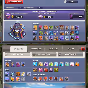 CHEAP TH14 - LVL224- HERO 68-77-50-45-21- RENAME 1000- PETS 3 4 4 2- RARE OBSTACLES - INSTANT DELIVERY- IOS-ANDROID